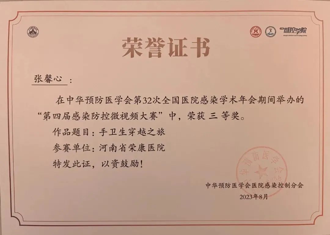 河南省“爱感控?致青春”演讲比赛三等奖(2022、2024)