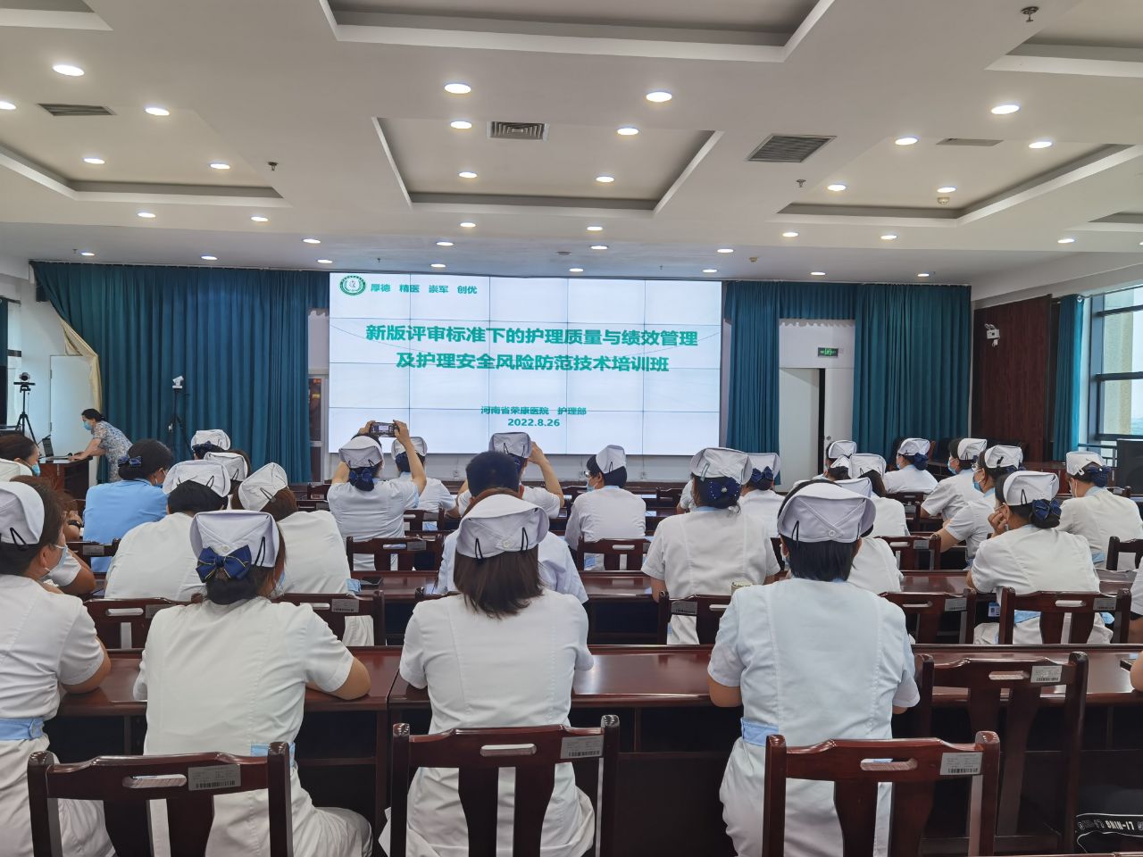 8月26-27日,洛阳市精神卫生专业委员会在我院门诊五楼举办新版评审标准下的“护理质量与护理绩效管理及护理质量安全风险防范”线上培训,洛阳市精神卫生护理专业委员会各位专家委员及我院全部护理人员共270余人线上线下同步观看学习。