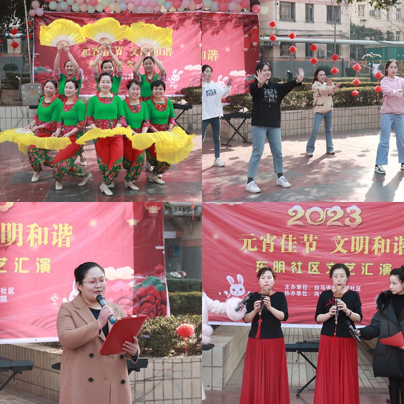 瑞虎辞岁送除夕,玉兔迎春闹元宵。为弘扬中华民族优秀传统文化,丰富群众精神文化生活,营造欢乐、祥和、喜庆的节日氛围。2月3日下午,我院与东明社区联合举办元宵节文艺汇演活动,用音乐传递着新年的喜悦,用舞蹈表达着共同的祝愿,为社区居民送上一道道原汁原味的“文化大餐”。
