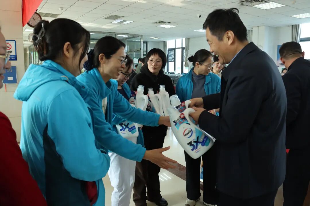 本次活动以二号楼、三号楼、四号楼、门诊楼、综合楼为单位,共计30名职工踊跃参加,院党委书记范化兴带领班子成员与职工们共同感受节日的欢乐气氛。