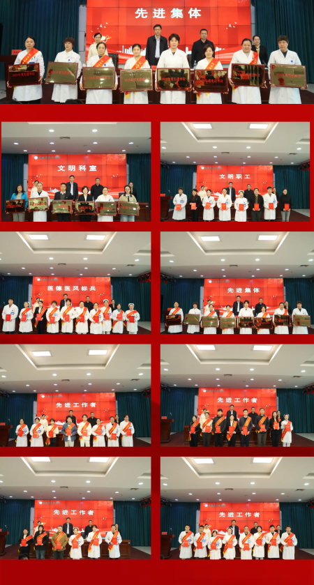 会议伊始,党委委员、副院长方崇芳宣读了《关于表彰文明科室与文明职工的决定》,副院长陈四军宣读了《关于表彰2025年度医德医风标兵的决定》,党委副书记、纪委书记吕彦吉宣读了《关于表彰2025年度先进集体与先进工作者的决定》。院领导依次为获奖集体和个人代表颁发荣誉证书及奖牌。