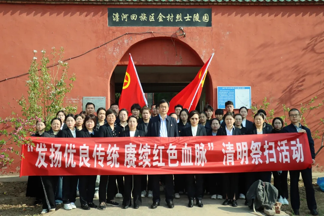 在清明节即将来临之际,为学习贯彻习近平总书记关于缅怀先烈、崇尚英雄的重要论述精神,追寻红色记忆,弘扬传统文化,发扬我院优良作风,进一步增强医院干部职工爱党、爱国、爱院意识,4月3日上午,院领导和我院党团员、青年代表共计40余人到金村烈士陵园开展清明祭扫及汉魏洛阳城遗址博物馆参观学习活动。