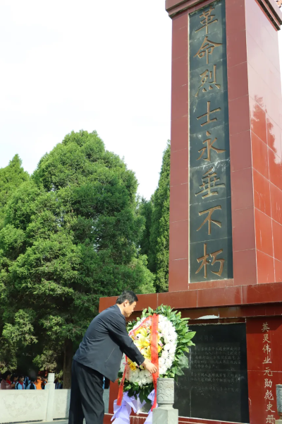 随后,两名青年代表向烈士墓碑敬献花圈,党委书记范化兴神情肃穆、满含敬意地为烈士整理挽联。之后,大家缓步进去烈士墓区,将手中的白菊献于碑前,祭扫安葬在这里的烈士,表达自己的崇高敬意。