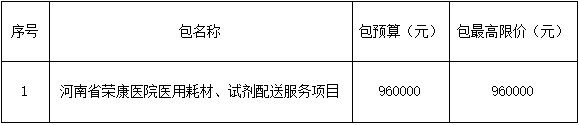河南省荣康医院医用耗材、试剂配送服务项目招标公告