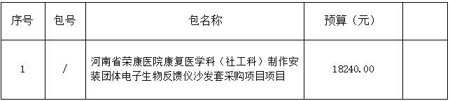 河南省荣康医院为康复医学科(社工科) 制作安装团体电子生物反馈仪沙发套采购项目的公告